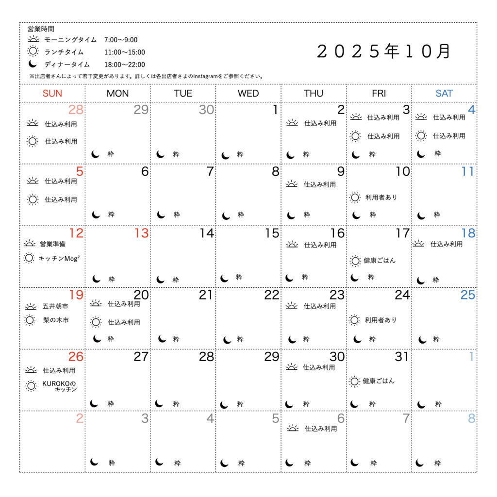 今月の「in SOMARU」営業カレンダー 10月9日更新