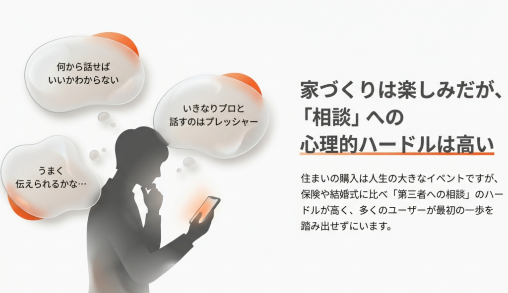 家づくりという人生最大級の意思決定において、「いきなり人に相談するのは不安」という心理的ハードルをどう下げるか。